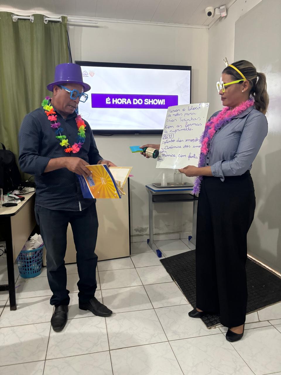 Voltando à teoria, foi apresentada aos professores a importância da música no processo de ensino-aprendizagem, destacando como ela contribui para o desenvolvimento cognitivo, emocional e social. A música foi reconhecida como uma ferramenta eficaz na promoção da inclusão e da diversidade cultural.