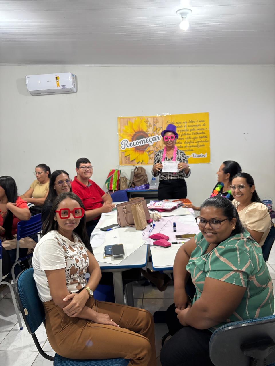 Para auxiliar na concentração e no bem-estar emocional, foi realizado um exercício de respiração guiada. Essa prática visou reduzir o estresse e preparar os professores para as atividades seguintes, promovendo um ambiente de aprendizagem mais equilibrado.